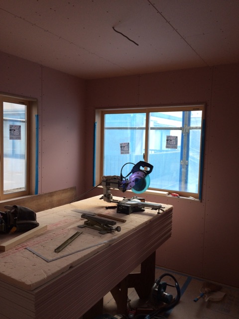 投稿日: 2017年2月9日現場進捗状況(^^) 安芸区 船越O様邸の現場風景です 外部は、外壁工事が進んでいます サッシの白と外壁の黒との組み合わせが素敵な外観に仕上がってきています もう少しで足場が解体されそうですよ 外観の全貌が確認できるまでもう少しですね 内部は、大工工事が進んでいます 一階は、階段がかかりました これで、二階への上がり下りが楽になりましたね 二階では、壁の間仕切り工事が進んでいます 間仕切り壁が完成すると、各部屋の広さが分かって来るのでイメージが湧きやすいですね 工事は順調に進んでいますのでお楽しみに〜