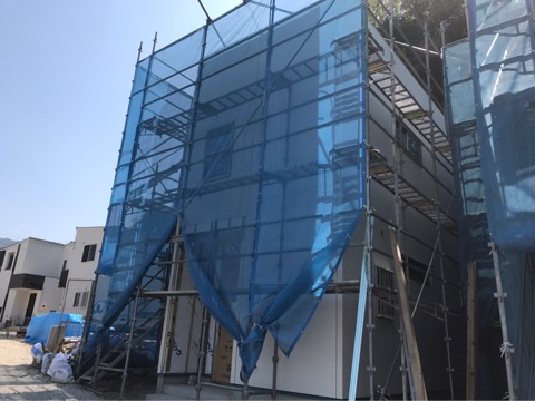 投稿日: 2017年4月14日現場進捗状況(^^) 安芸郡 海田町寺迫10号地の現場風景です 外部の外壁工事が進んでいます 外壁工事工事中は、ネットが貼ってある為に外観が分かりにくいですが、もう少ししたら足場が解体されますのでお楽しみに〜