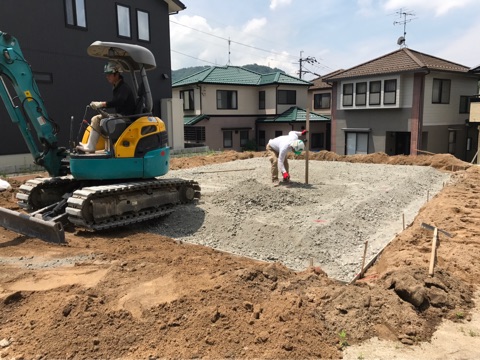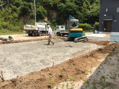 投稿日: 2017年5月25日 投稿者: pana-k04現場進捗状況(^^) 安芸郡 海田町寺迫2丁目T様邸の現場風景です 基礎工事が始まりました まずは、基礎の下の地盤造りからスタートです 基礎工事が始まると、いよいよ工事が本格的に始まりますよ お楽しみに〜