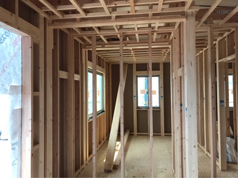 投稿日: 2017年5月1日現場進捗状況(^^) 東広島市 黒瀬町切田B様邸の現場風景です 外部は、サッシが取り付けられて、屋根工事が行われています 次は、外壁工事の準備工事が始まって行きます 内部は、天井下地工事が行われています 天井下地が施工されると、天井高さが確認して頂けますので、現場に来られた際に確認してみて下さい 現場は順調に進んでいますので、お楽しみに〜