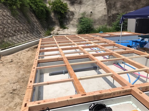 投稿日: 2017年7月25日現場進捗状況(^^) 安芸郡 海田町寺迫K様邸の現場風景です 大工さんによる、土台敷きが行われました 一階の床部分が施工されて、いよいよ上棟を待つのみとなりました 週末の上棟を楽しみにしていて下さいね
