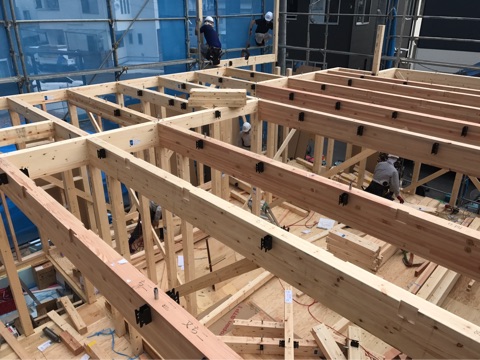 投稿日: 2017年7月25日現場進捗状況(^^) 安芸郡 海田町寺迫S様邸の現場風景です 本日、無事に上棟を迎えました 一階部分の施工風景です 二階の床組の施工風景です 二階部分の施工風景です 夕方には、無事屋根まで仕上がり、上棟が完了しました これから、現場が進んで行きますのでお楽しみに〜