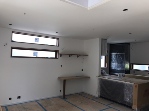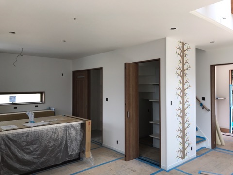 投稿日: 2017年8月5日現場進捗状況(^^) 安芸郡 海田町寺迫2丁目T様邸の現場風景です 内部のクロス工事が完了しました 各部屋とも、T様が選ばれたクロスが施工されています アクセントクロスも、可愛く仕上がりましたね この後は、トイレや洗面化粧台、照明器具の取り付けなどの仕上げ工事に移って行きます お盆までに掃除をする予定ですので、養生が撤去されるまでもう少しお待ち下さいね