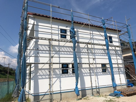投稿日: 2017年8月23日現場進捗状況(^^) 安芸区 中野5丁目2号地の現場風景です 外部では、塗り壁の工事が完了しました あとは、仕上げ工事を経て足場解体となります 現場は順調に進んでいますので、お楽しみに〜