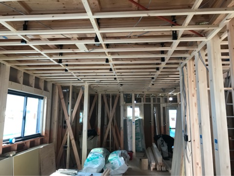 投稿日: 2017年11月17日現場進捗状況(^^) 呉市 広古新開O様邸の現場風景です 内部では、大工工事が進んでいます 各部屋の天井下地が施工されましたので、天井高を確認して頂けます 現場は順調に進んでいますので、お楽しみに〜