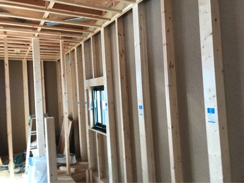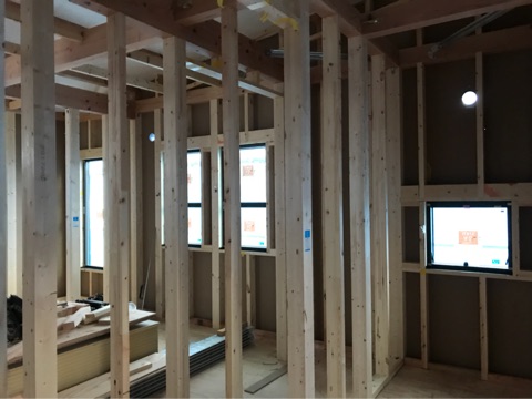 投稿日: 2017年11月17日現場進捗状況(^^) 呉市 海岸2丁目O様邸の現場風景です 現場では、サッシが取り付けられて内部の間仕切り下地が施工されました 外部は、サッシが施工されてこれから外壁工事へと移って行きます 上棟時に何もなかった空間が、部屋の間仕切り下地が施工されることにより、イメージが湧きやすくなりましたね これから、現場が日に日に進んで行くのでお楽しみに〜