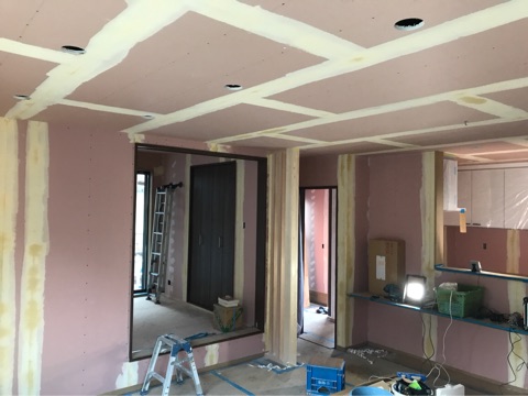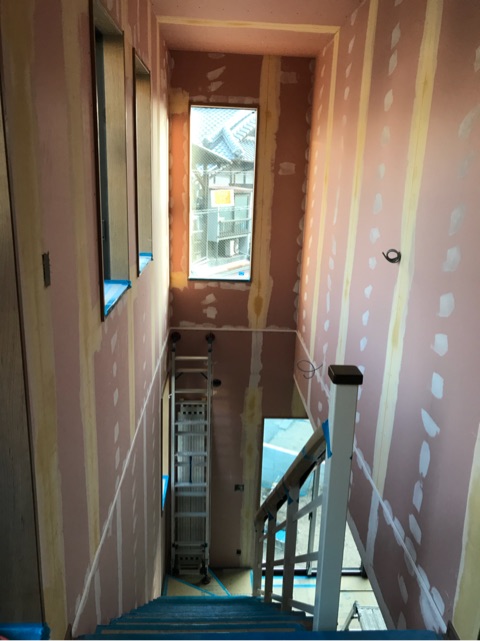 投稿日: 2018年1月15日現場進捗状況(^^) 呉市 海岸O様邸の現場風景です 内部では、大工工事が完了してクロス工事が始まりました まずは、下地処理が行われていきます この後に、O様が選ばれたクロスが施工されて行きます 内部の印象がガラリと変わりますので、お楽しみに〜