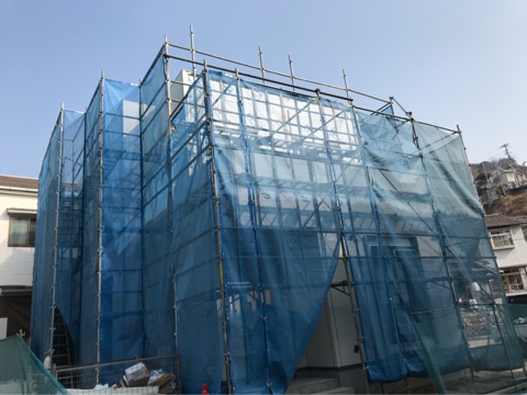 投稿日: 2018年2月24日現場進捗状況(^^) 呉市 海岸2号地の現場風景です 内部は、断熱材施工が行われています 外部に面する壁に高気密の断熱材が施工されています 高い断熱性能を持った断熱材は、家計の光熱費節約に一役かってくれますよ 外部では、外壁工事が行われています 段々と外観が仕上がって来ており、全体の雰囲気が分かって来ました 工事は順調に進んでいますので、お楽しみに〜