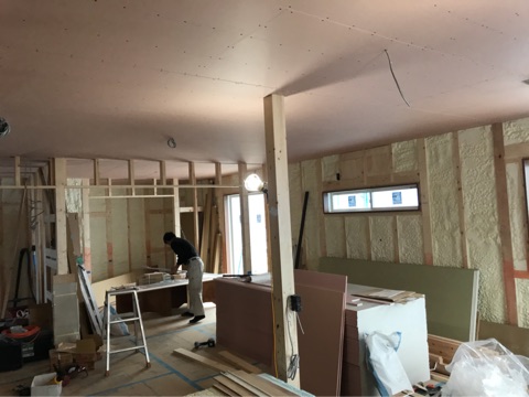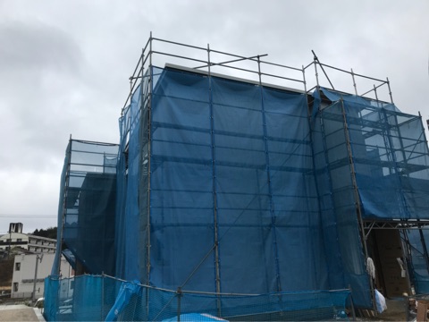 投稿日: 2018年3月8日 投稿者: pana-k04現場進捗状況(^^) 東広島市 西条町御薗宇H様邸の現場風景です 内部では、大工工事が進んでいます 一階部分は天井が施工されて、階段を施工する準備工事が行われていました 階段がかかると、二階への上がり下りがスムーズに行って頂けるようになります 二階では、間仕切り壁の施工が進んでいます 各部屋とも、間仕切り壁が施工され部屋の空間的広さが確認して頂けるようになりました 外部では、外壁工事が進んでいます 写真では、養生シートで覆われて見えにくいですが、外壁工事は順調に進んでいます 段々と外観が確認して頂けるようになってきましたよ 現場は順調に進んでいますので、お楽しみに〜