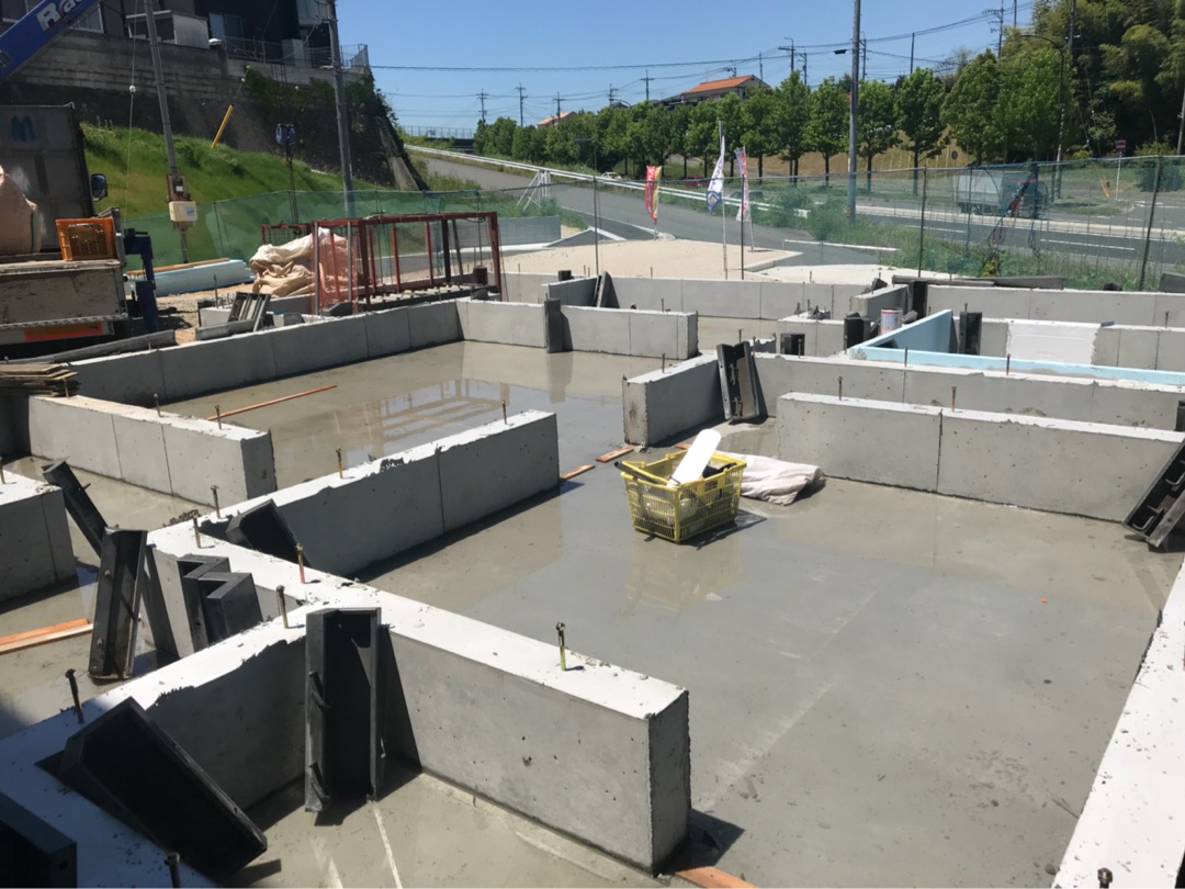 投稿日: 2018年5月21日現場進捗状況(^^) 東広島市 西条御薗宇O様邸の現場風景です 基礎工事が仕上げに入りました 型枠を解体し、基礎の全景が分かるようになりました 来週の上棟に向けて、工事は順調に進んでいますので、お楽しみに〜