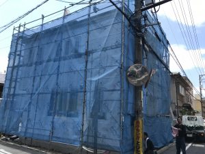 外部では、外壁工事の下準備が行わられています![]()