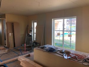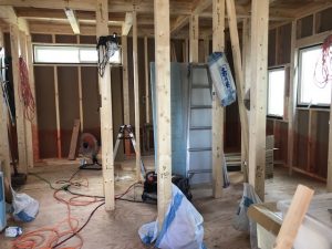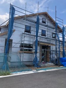 サッシや透湿防水シート(白いシートの事です)の取り付けも完了しております。