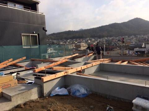 投稿日: 2017年2月22日現場進捗状況(^^) 呉市 焼山中央⑤号地の現場風景です 外部は、屋根工事が終わり、サッシの取り付けが終わりました これから、外壁工事へと移って行きます 内部は、ベランダ工事が完了しました 広々と4畳ほどあるベランダは、屋根に覆われ洗濯物や布団を干すのに重宝しそうだすね 工事は順調に進んでいますので、お楽しみに〜