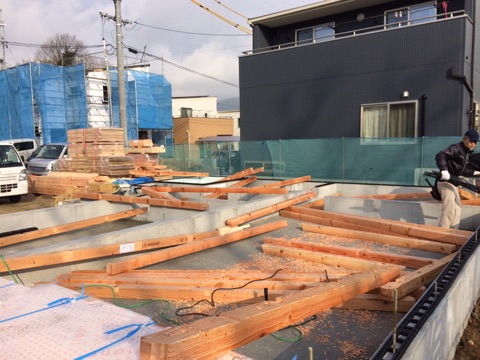 投稿日: 2017年2月18日現場進捗状況(^^) 呉市 焼山中央①号地の現場風景です 基礎工事が完了し、水道工事が完了しました 本日は、大工さんによる土台敷き工事が行われています 1階の床下地を作るこの工程が行われると、上棟に向けての本格的なカウンドダウンが始まります 来週の上棟に向けて、工事が進んで行きますのでお楽しみに〜