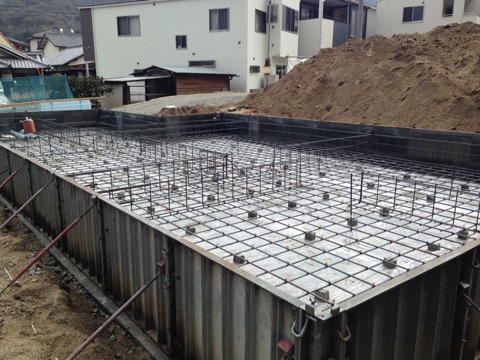 投稿日: 2017年3月3日現場進捗状況(^^) 安芸郡 海田町寺迫11号地の現場風景です 基礎工事が進んでいます 現在は、基礎工事業者さんによって配筋工事が完了しています これから、土間コンクリート、立ち上がりコンクリートの打設へと移って行きます 現場は順調に進んでいますので、お楽しみに〜