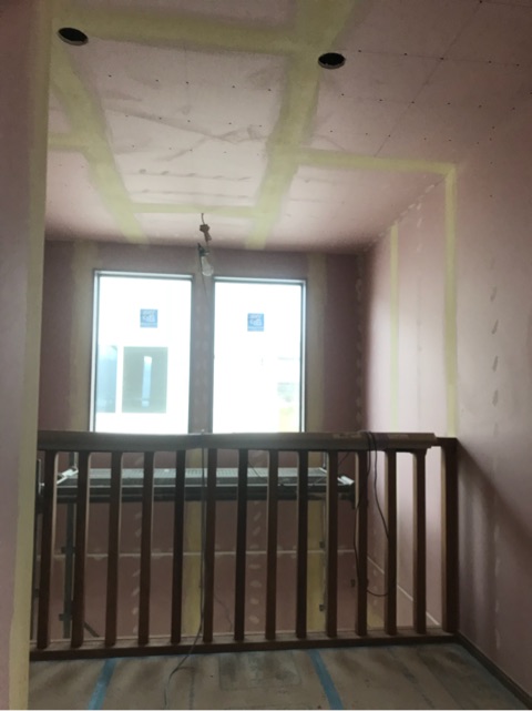 投稿日: 2018年3月19日現場進捗状況(^^) 東広島市 西条町N様邸の現場風景です 内部では、クロス工事が進んでいます 一階のリビングの天井が施工されています 一階のトイレも、アクセントクロスが貼られています 二階ホールには、造作手摺が施工されています 現場は順調に進んでいますので、お楽しみに〜