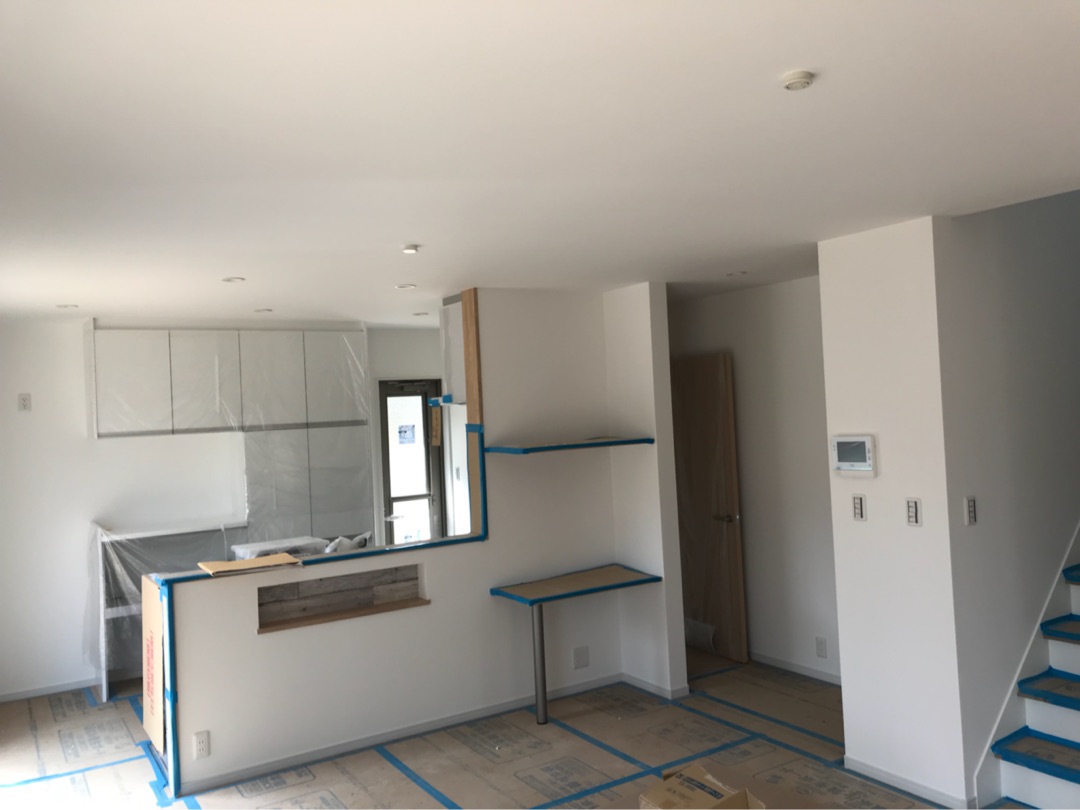 投稿日: 2018年4月5日現場進捗状況(^^) 呉市 焼山北M様邸の現場風景です 内部の美装工事が終わり、完成を迎えました 明るくて広いキッチンでは、奥様の家事がはかどりそうですよ リビングは大きな窓を二つ設けたので、陽の光が差し込む明るい仕上がりになりました 二階の廊下部分には、可動式の棚板を設けてみせる収納スペースを作りました 外観は、白を基調として明るい印象を与える仕上がりになりました これから、外構工事に移って行きます 完成へ向かって工事が進んで行きますので、もう少しお待ち下さい