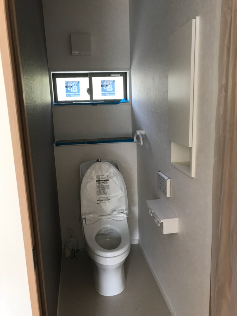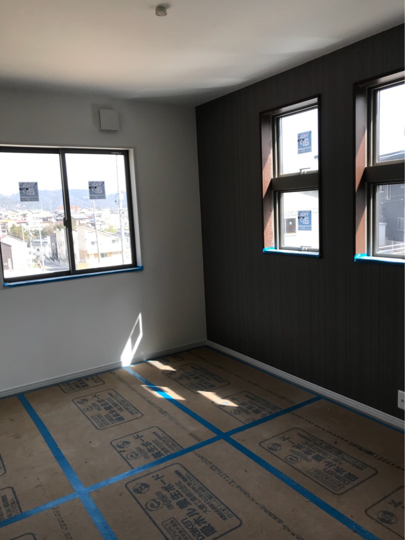 投稿日: 2018年3月29日現場進捗状況(^^) 呉市 焼山北M様邸の現場風景です 内部では、照明器具の取り付け、設備器具の取り付けが終わりました リビングには、明るい日差しが差し込むように大きな窓を設けました トイレは、白を基調とした清潔感のある仕上がりにすると同時に、一面だけクロスをアクセントとしました 二階の部屋も、クロスに合わせて窓枠を茶色にするなど、細部にこだわりのある仕上がりになりました 工事が全て終わると、美装工事を行い床や窓の養生を取り払って完成した内部がご覧に頂けます お楽しみに〜