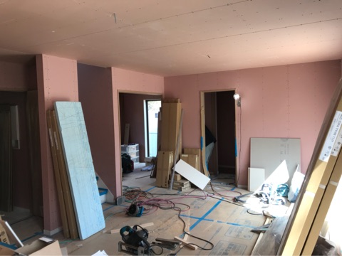 投稿日: 2018年3月9日現場進捗状況(^^) 呉市 焼山北M様邸の現場風景です 内部では、大工工事が終盤を迎えています 仕上げの工事として、建具の取り付けや棚板の取り付けが行われていました もう少しで大工工事が終わります 次は、クロス工事が入って来ます 内部が更にガラリと変わりますので、お楽しみに〜