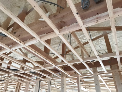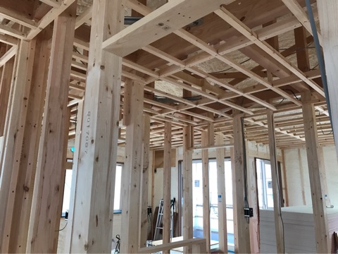投稿日: 2017年5月12日現場進捗状況(^^) 安芸郡 海田町寺迫T様邸の現場風景です 本日、無事に上棟を迎えましたT様邸です 一階柱立て風景です 二階の桁が施工されています 二階の桁が施工される頃には、外観はこの様な状態です 構造用面材を施工しています 二階の作業が進んでいます お昼頃には、二階も無事に梁がかかりました 屋根の作業に入ります 夕方には、屋根た雨養生を施工して完了です 無事に上棟が完了しました これから、現場が進んで行きますのでお楽しみに〜