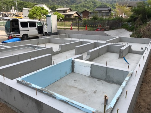 投稿日: 2017年4月25日現場進捗状況(^^) 安芸郡 海田町寺迫T様邸の現場風景です 基礎工事が完了しました これから、水道工事が行われ、大工さんによる土台敷きを経て上棟を迎えます 現場は順調に進んでいますので、お楽しみに〜