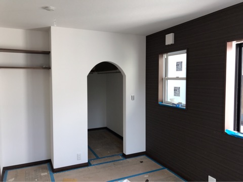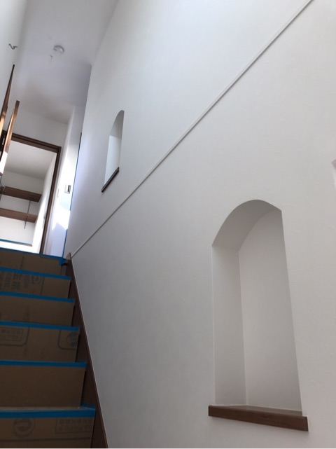 投稿日: 2017年9月8日現場進捗状況(^^) 呉市 広本町Y様邸の現場風景です 内部では、クロス工事が終わりました リビングには、タイル調のアクセントクロスでワンポイントに 階段には、可愛らしくニッチを設けました 二階のトイレは棚を設けて、見せる収納を 主寝室は、一面アクセントを施工してワンポイントに これからは、トイレ、洗面化粧台、照明等を施工して仕上げ工事に入ります 現場は順調に進んでいますので、お楽しみに〜