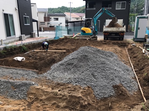 投稿日: 2017年7月7日現場進捗状況(^^) 安芸郡 海田町寺迫K様邸の現場進捗状況 基礎工事が始まりました まずは、基礎下の地盤作りからスタートです こうして工事が始まると、現場の様子が変わって行きますのでお楽しみに〜