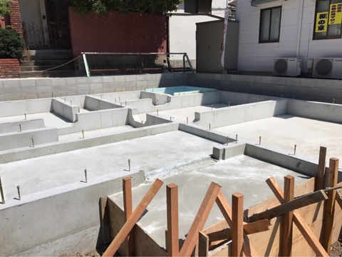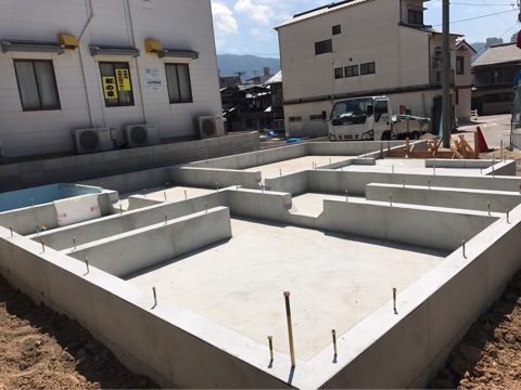 投稿日: 2017年8月24日現場進捗状況(^^) 呉市 海岸1号地の現場風景です 基礎工事が完了しました この後は、水道工事を経て、大工さんによる土台敷き〜上棟へと工事が進んで行きます 現場は順調に進んでいますので、お楽しみに〜