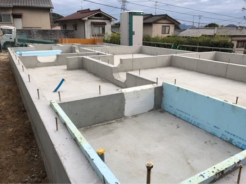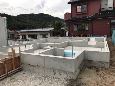 投稿日: 2017年9月15日現場進捗状況(^^) 安芸区 中山新町1号地の現場風景です 基礎工事が完了しました 次は、水道工事〜大工さんによる土台敷きを経て、いよいよ上棟となります 月末上棟に向けて、工事が進んでいます