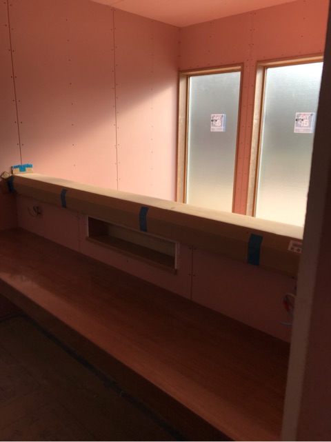 投稿日: 2018年1月19日現場進捗状況(^^) 東広島市 西条町御薗宇7号地の現場風景です 内部では、大工工事が進んでいます 二階の各部屋は、間仕切り壁、建具枠が施工されほぼ大工工事が完了しました 二階のホール部分には、作り付けのカウンターを設けました 書斎スペースにするもよし 作業スペースにするもよし お子様のフリースペースにするもよし 自由に使っていただければと思います もう少しで、大工工事が完了します 次は、クロス工事へと移って行きますので、また内部がガラリと変わります 現場は順調に進んでいますので、お楽しみに〜