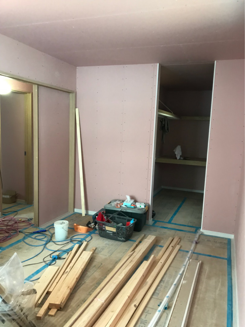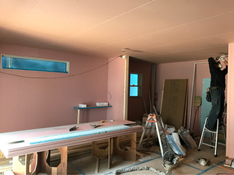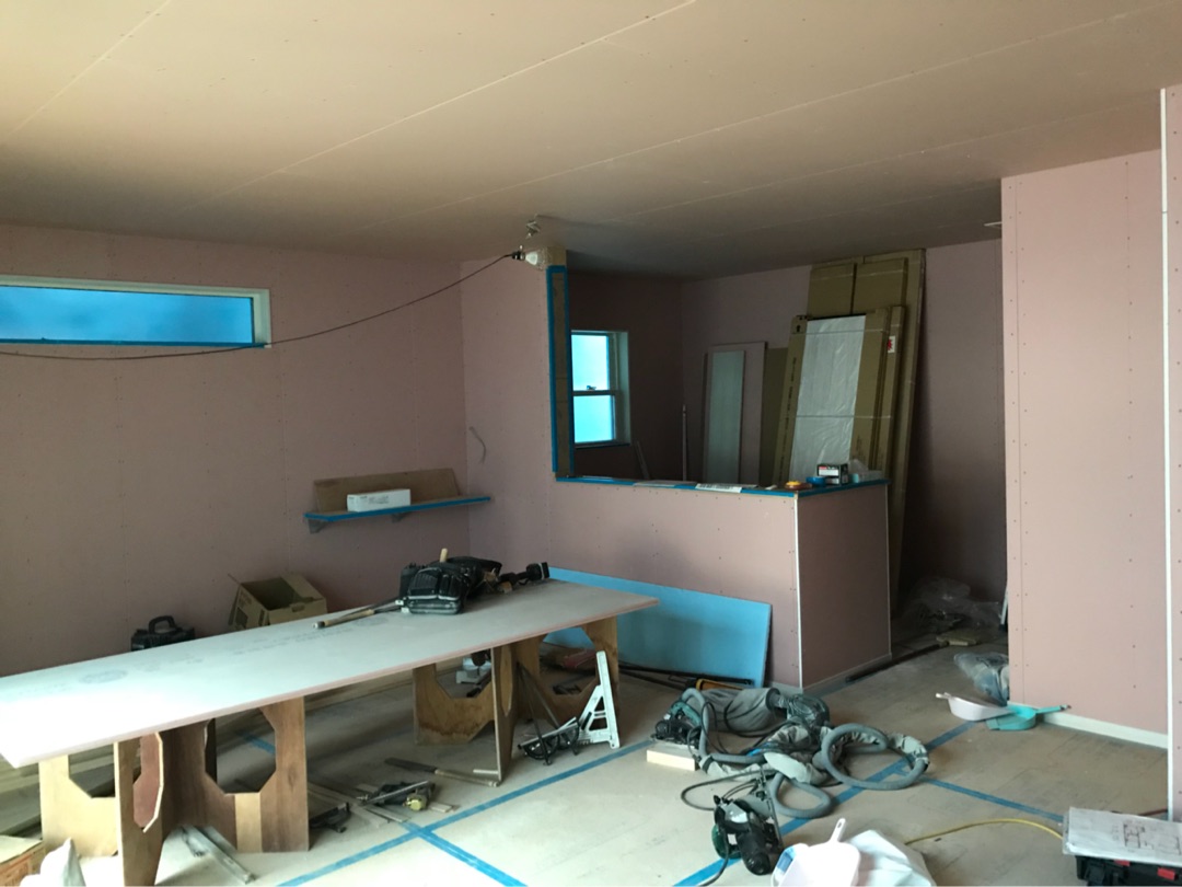 投稿日: 2018年5月14日現場進捗状況(^^) 安芸郡 海田町蟹原K様邸の現場風景です 内部では、大工工事が終盤を迎えています 各部屋とも、建具枠を付け、間仕切り壁の仕上げなどが行われています もう少しで、大工工事は完了しますよ 外部は、外壁工事が始まりました K様が選ばれた外壁が施工され、外観が確認出来るようになってきました 現場は順調に進んでいますので、お楽しみに〜