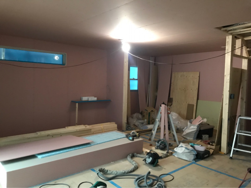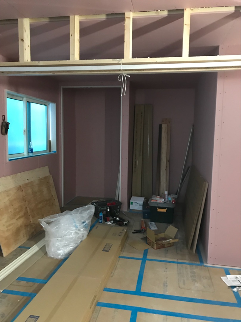 投稿日: 2018年5月7日現場進捗状況(^^) 安芸郡 海田町蟹原K様邸の現場風景です 外部では、外壁工事の準備が始まりました これから、外壁工事が進んで行きます 内部は、大工工事が進んでいます LDKの施工風景です 間仕切り壁が施工されて、広さが確認して頂けるようになってきました お風呂も施工されていました 落ち着いた雰囲気のお風呂に仕上がってます 二階の2部屋続きの洋室では、大きな建具枠が施工されていました 閉めれば壁として、開ければ大きなお部屋として使って頂けます 現場は順調に進んでいますので、お楽しみに〜