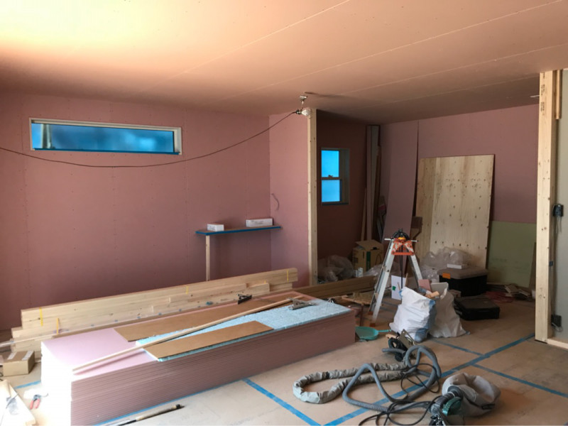 投稿日: 2018年5月10日現場進捗状況(^^) 安芸郡 海田町蟹原K様邸の現場風景です 外部では、外壁工事が始まりました まずは、下準備工事が行われています これから、外壁が施工されて行きますと、段々と外観が仕上がっていきます 内部では、大工工事が進んでいます 建具枠や間仕切り壁の施工が進むにつれて、段々と室内が仕上がっていっています 現場は順調に進んでいますので、お楽しみに〜